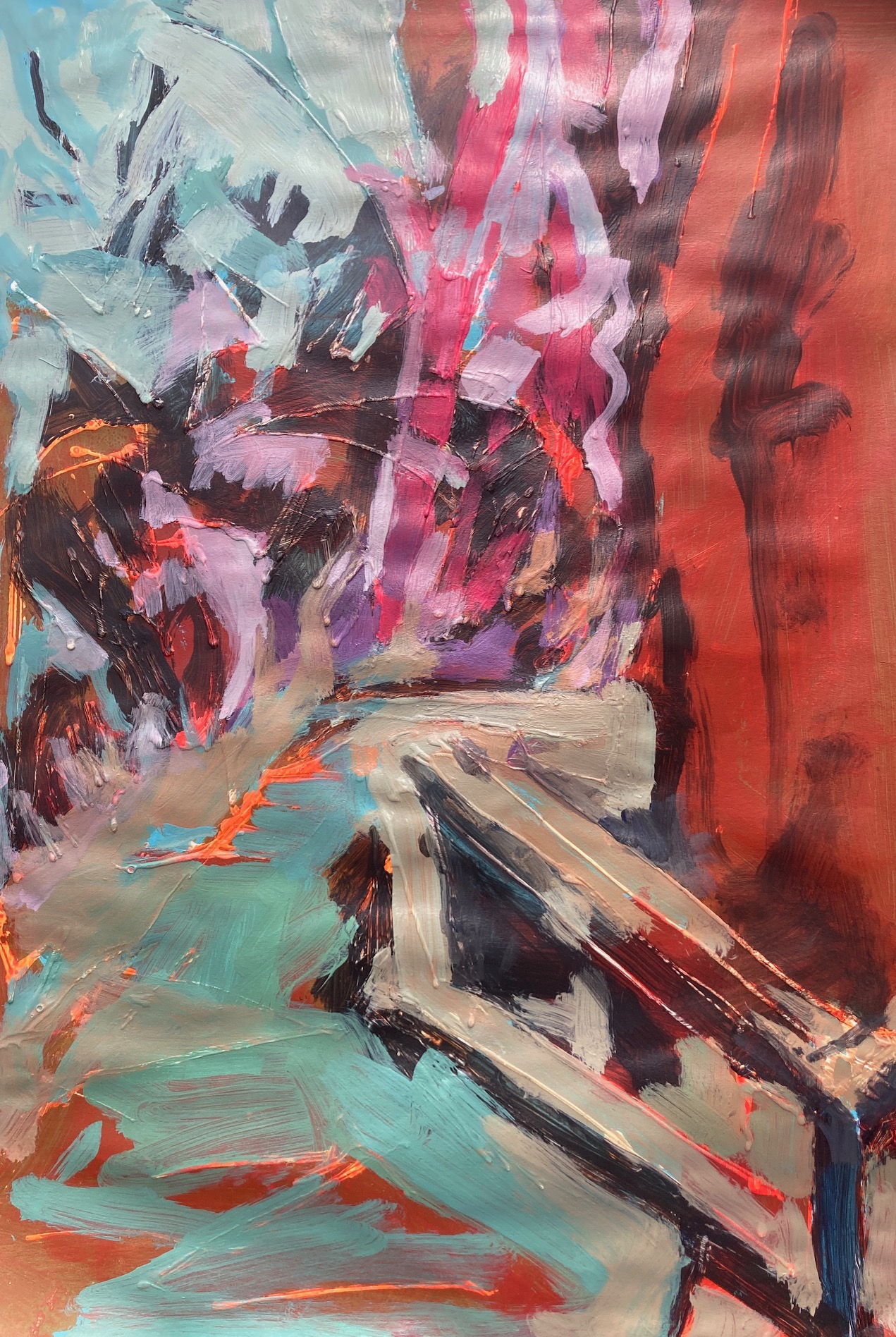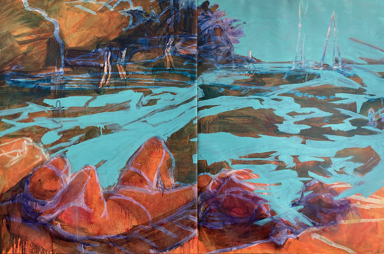 Linda’s work is a reflective expression from her plein air sketchbooks and memories. Whether working in mixed media, watercolour, ink, charcoal, acrylic or oil paint she imposes a personal colour choice to capture the dynamism of light and colour to evoke the feeling of being in that particular landscape or place.