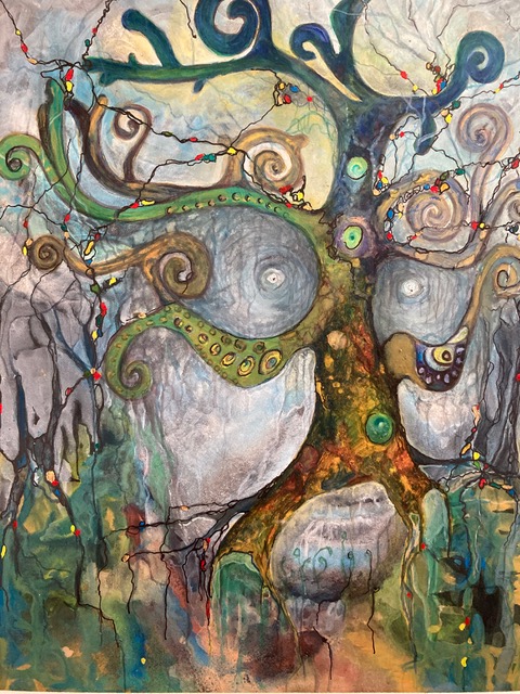 Using mixed media, Maggie creates abstract interpretations of the environment and our connection with the wider world.